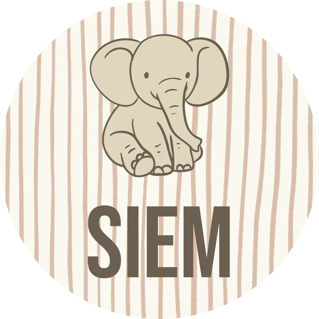 Een rond schattig tuinbord met olifant en hippe strepen achtergrond. Tip: bestel het geboortebord al ruim voor de uitgerekende datum. Dan kan het meteen in de tuin gezet worden als de baby geboren is. Let op: Het tuinbord wordt zonder houten paal geleverd. Je kunt zelf een geschikte paal halen bij de bouwmarkt en deze met schroeven aan het bord monteren voor een stevige plaatsing.