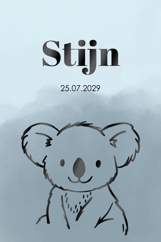 Geboortekaartje jongen lijntekening koala hoogglans