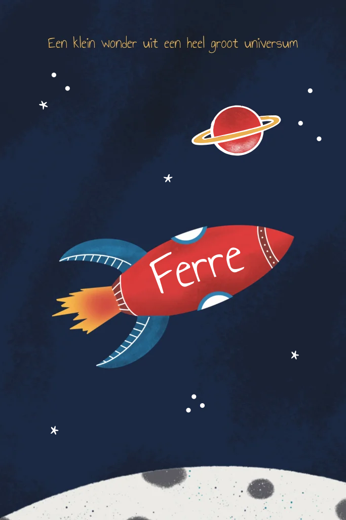 Geboortekaartje in de ruimte met raket sterren