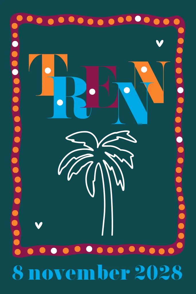 Kleurrijk jongens geboortekaartje met de letters van de naam in verschillende kleuren. Het kaartje is speels door het golvend kader, de stippen en de naam. De gouden details in de stippen geeft dit geboortekaartje een luxe uitstraling. Pas het geboortekaartje naar wens aan in de editor.