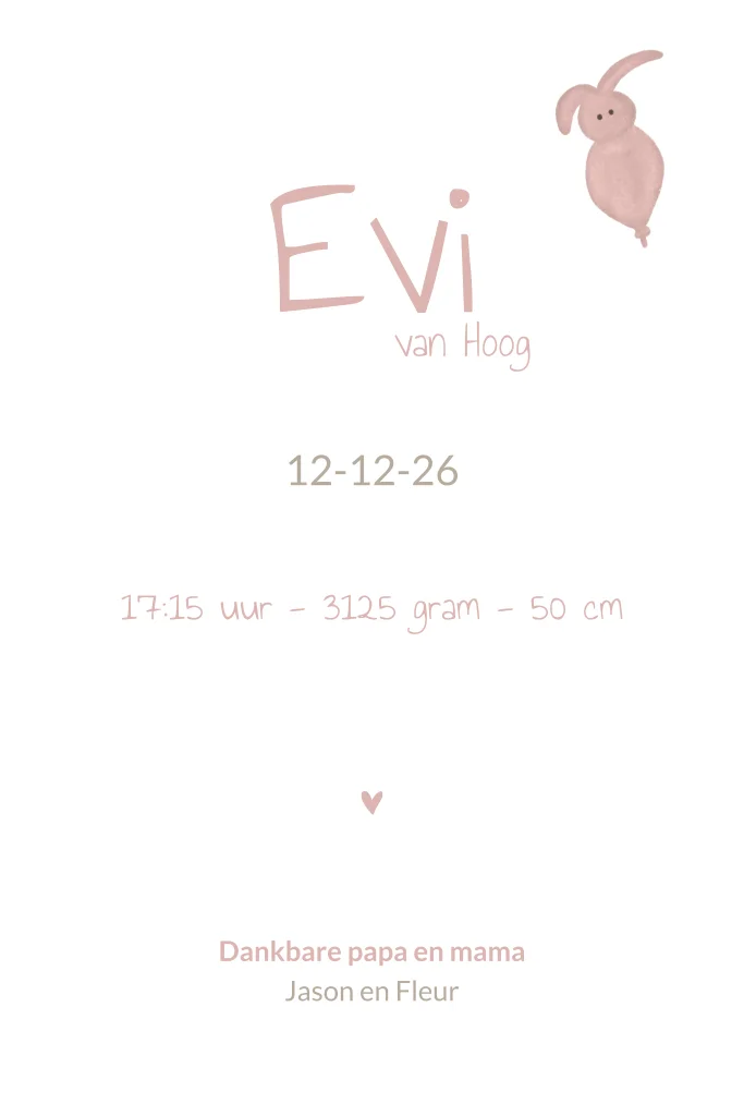 Geboortekaartje baby meisje in bedje met knuffeldoekje