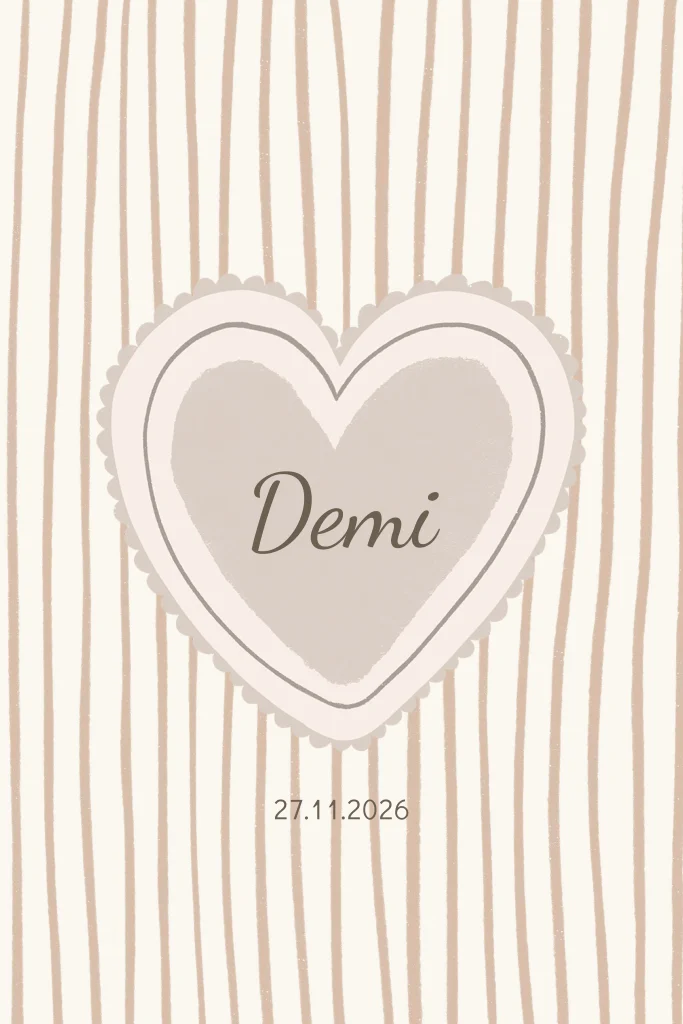Geboortekaartje hartje beige en strepen
