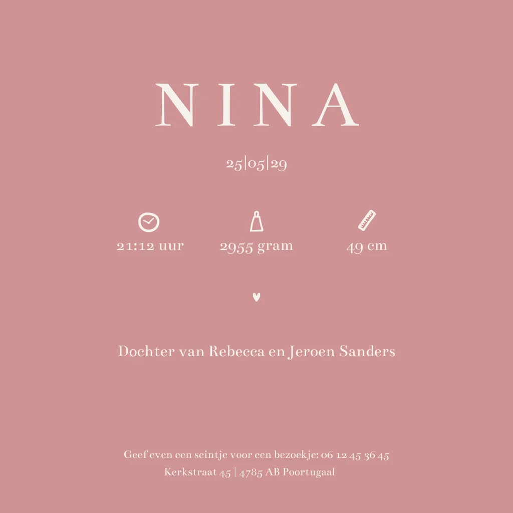Geboortekaartje marmer oudroze met bloem en hartje