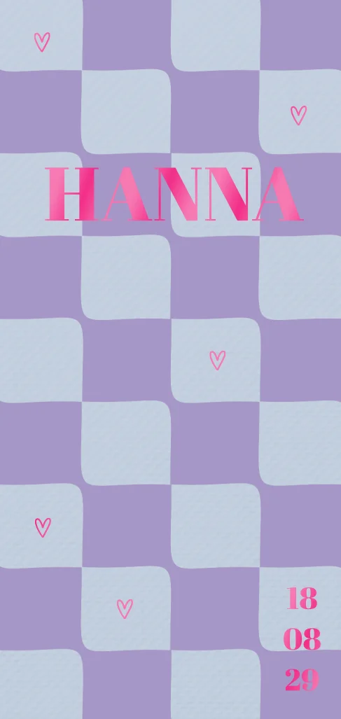 Geboortekaartje meisje geblokt met hartjes hoogglans