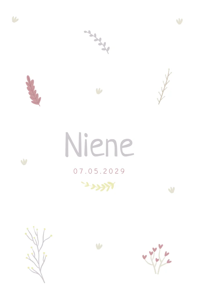 Een lief geboortekaartje met takjes in wit en roze. Personaliseer dit unieke ontwerp in onze online editor.