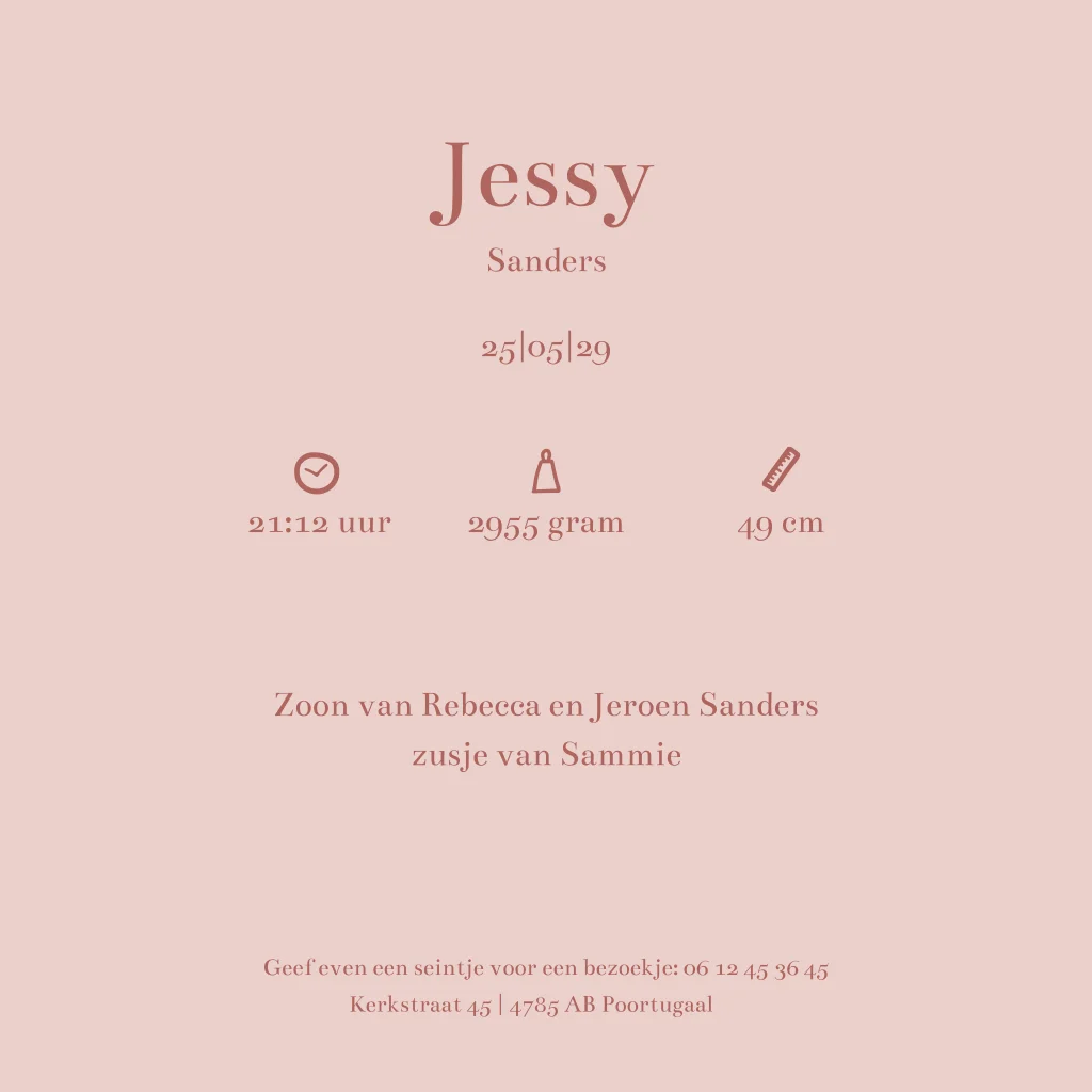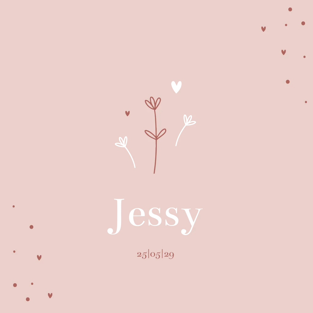Een lief geboortekaartje met takjes en stippen en hartjes. Personaliseer het ontwerp naar wens in onze editor.