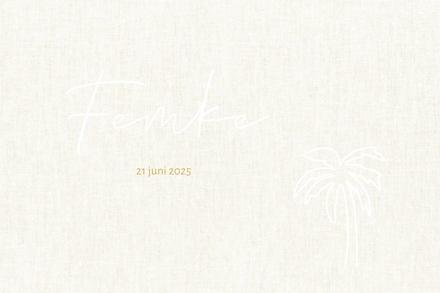 Lief geboortekaartje met palmboom in goud-beige stijl. Personaliseer eenvoudig met onze online editor.