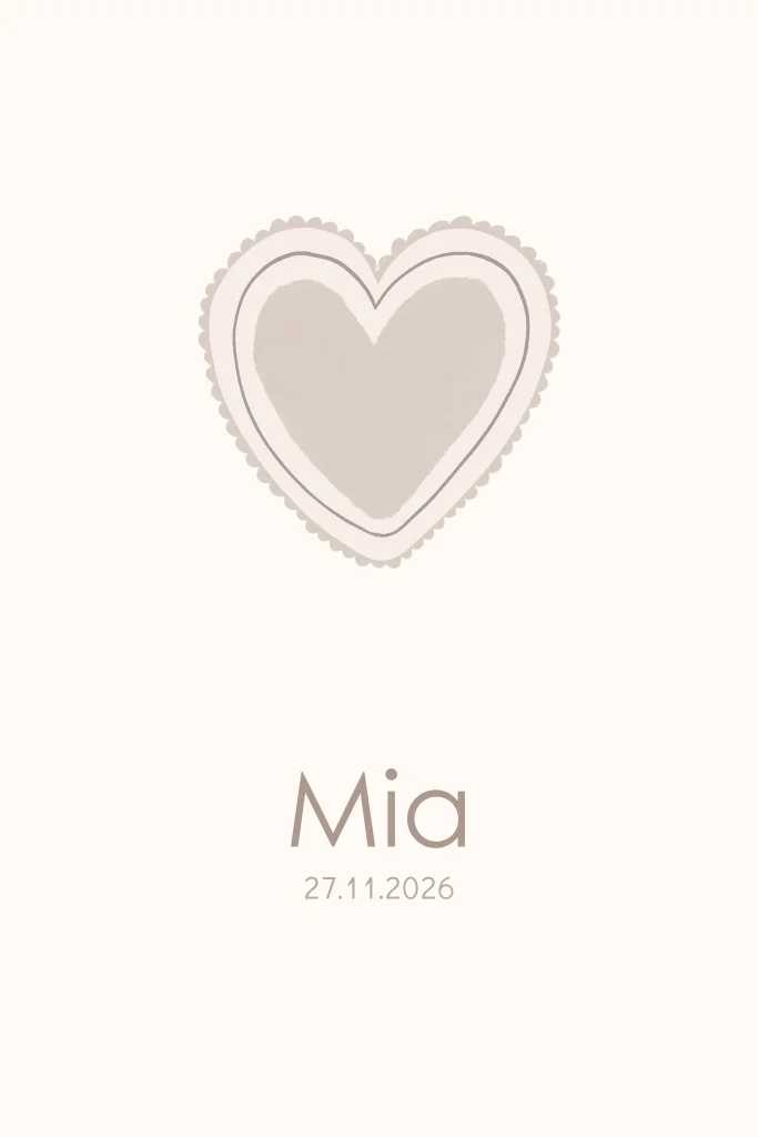 Lief geboortekaartje met hart-design, personaliseer naar wens in onze online editor.
