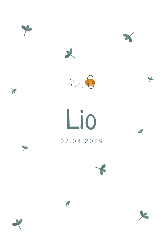 Lief geboortekaartje met bij en groen accent. Personaliseer eenvoudig in onze online editor voor een unieke touch.