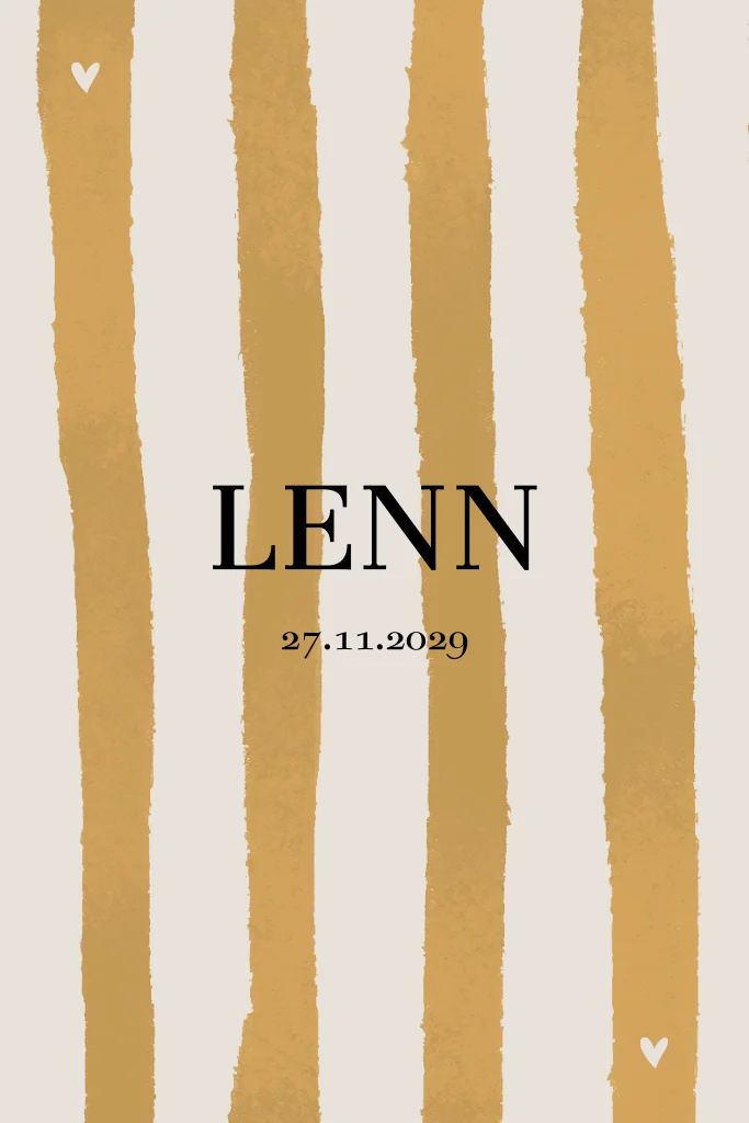 Stoer neutraal geboortekaartje met strepen in watercolor. Pas het kaartje geheel naar wens aan in onze editor.