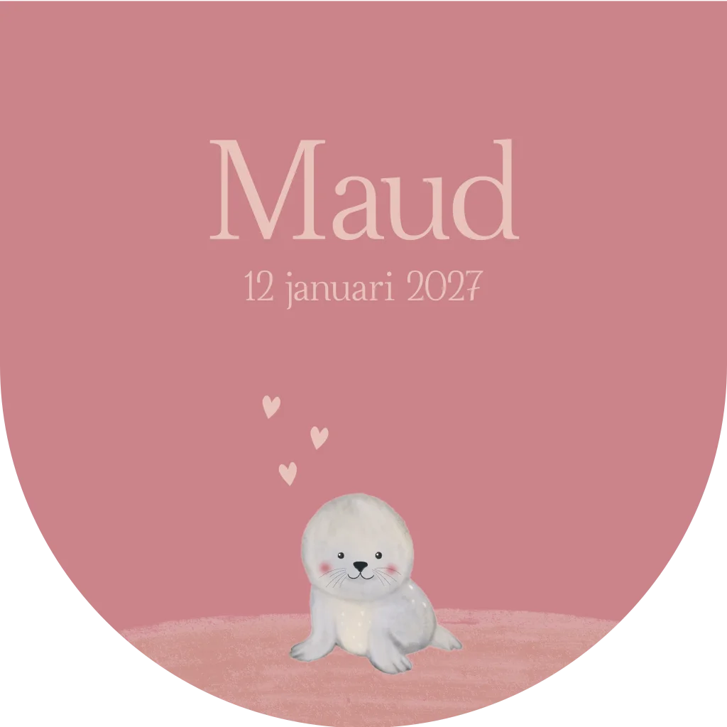 Geboortekaartje ronde onderkant zeehondje en hartjes