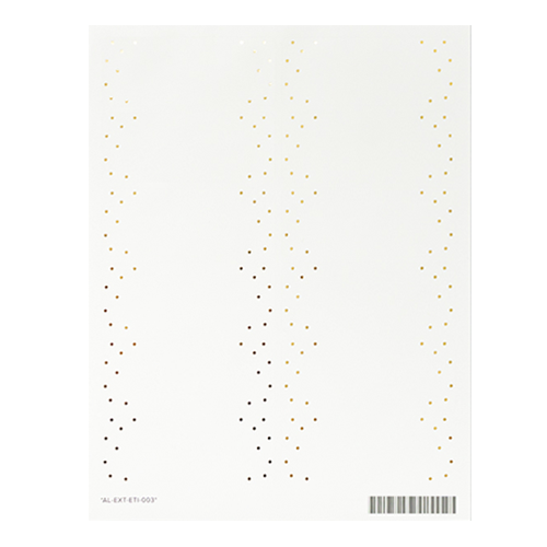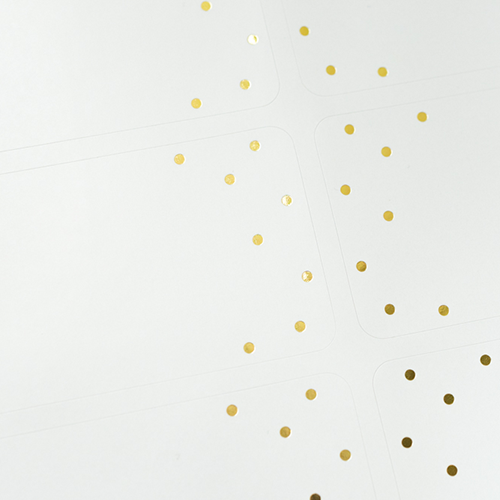 Een vel met 12 adresstickers op glanzend papier. Elke sticker is mooi versierd met goudfolie stippen. Op de adressticker kun je zelf het adres schrijven of printen.