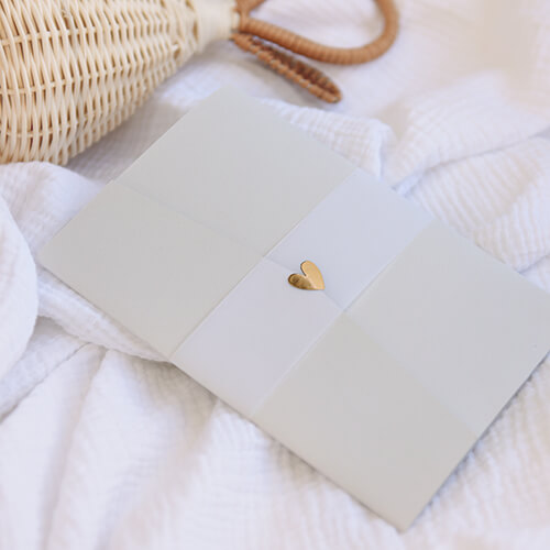 Bellyband van kalkpapier met goudfolie hartje. Gaaf om een pocketfold of om een set kaarten. Gemakkelijk vast te maken met een mooie sluitzegel.
