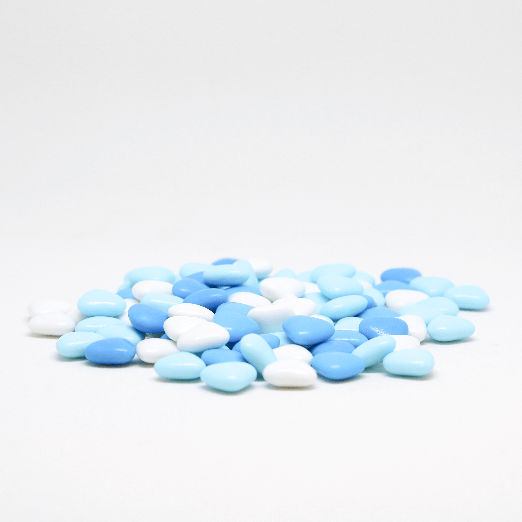 Kleine chocoladehartjes in witte en blauwe kleur. Superleuk om als doopsuiker te gebruiken bij de geboorte van een jongetje. Deze hartjes worden verkocht per 900 gram.
