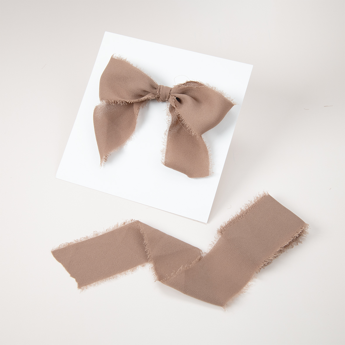 Prachtig Chiffon zijden lint in de kleur bruin om je kaartje of pocketfold mee te versieren. (2 x 10 meter in een organza zakje)
