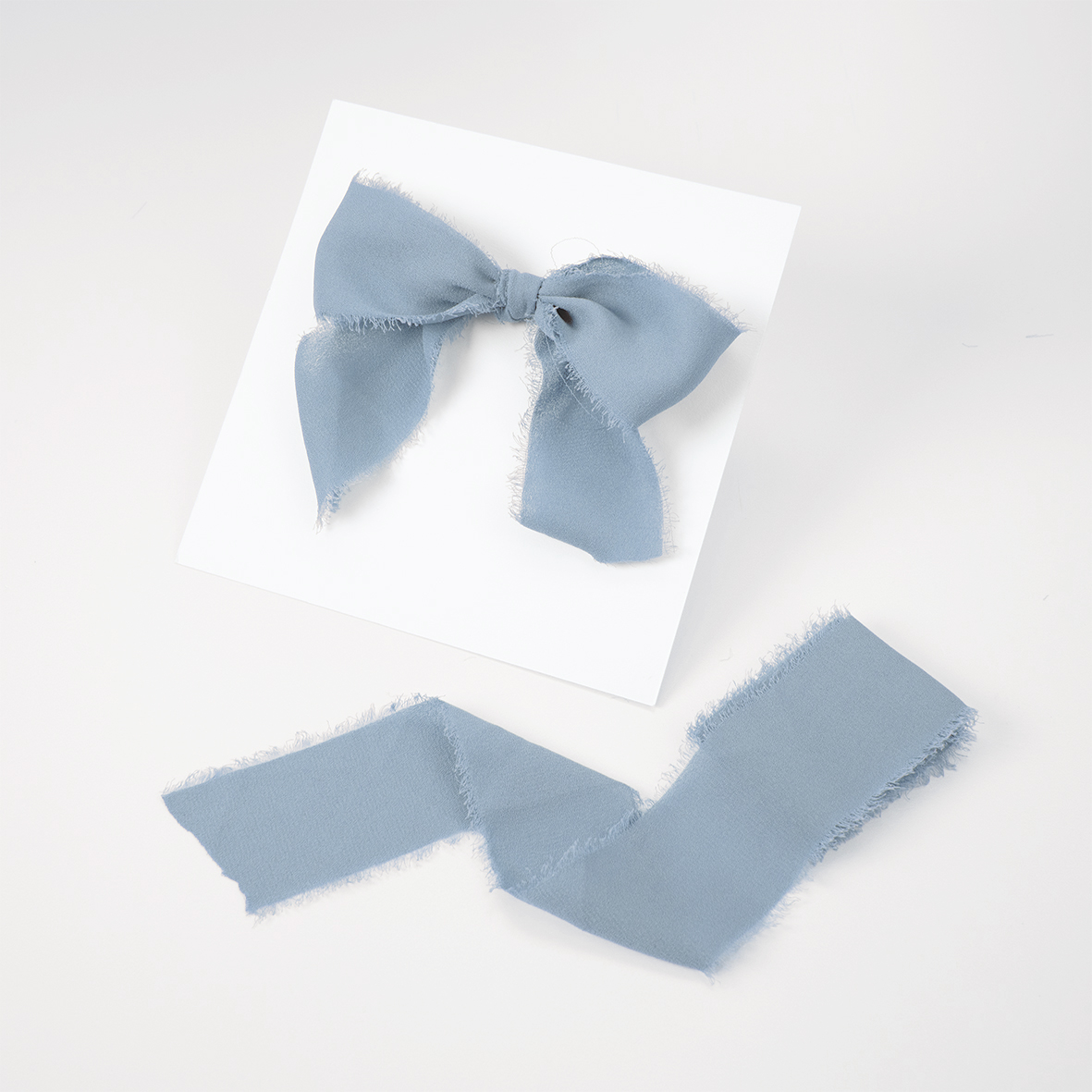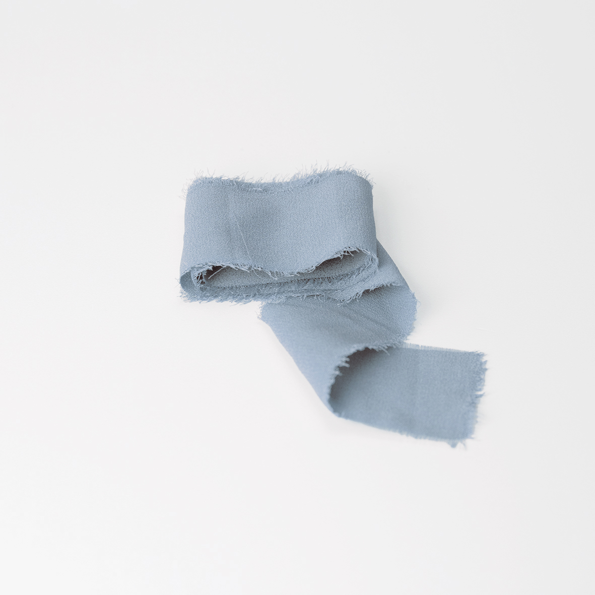Blauwgrijs chiffon zijden lint (20 meter). Je ontvangt 2 rollen van 10 meter. Geschikt om ca. 40 kaarten mee te versieren.