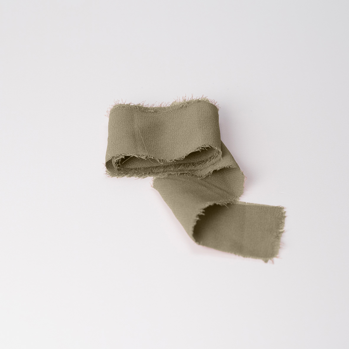 Saliegroen chiffon zijden lint (20 meter). Je ontvangt 2 rollen van 10 meter. Geschikt om ca. 40 kaarten mee te versieren.