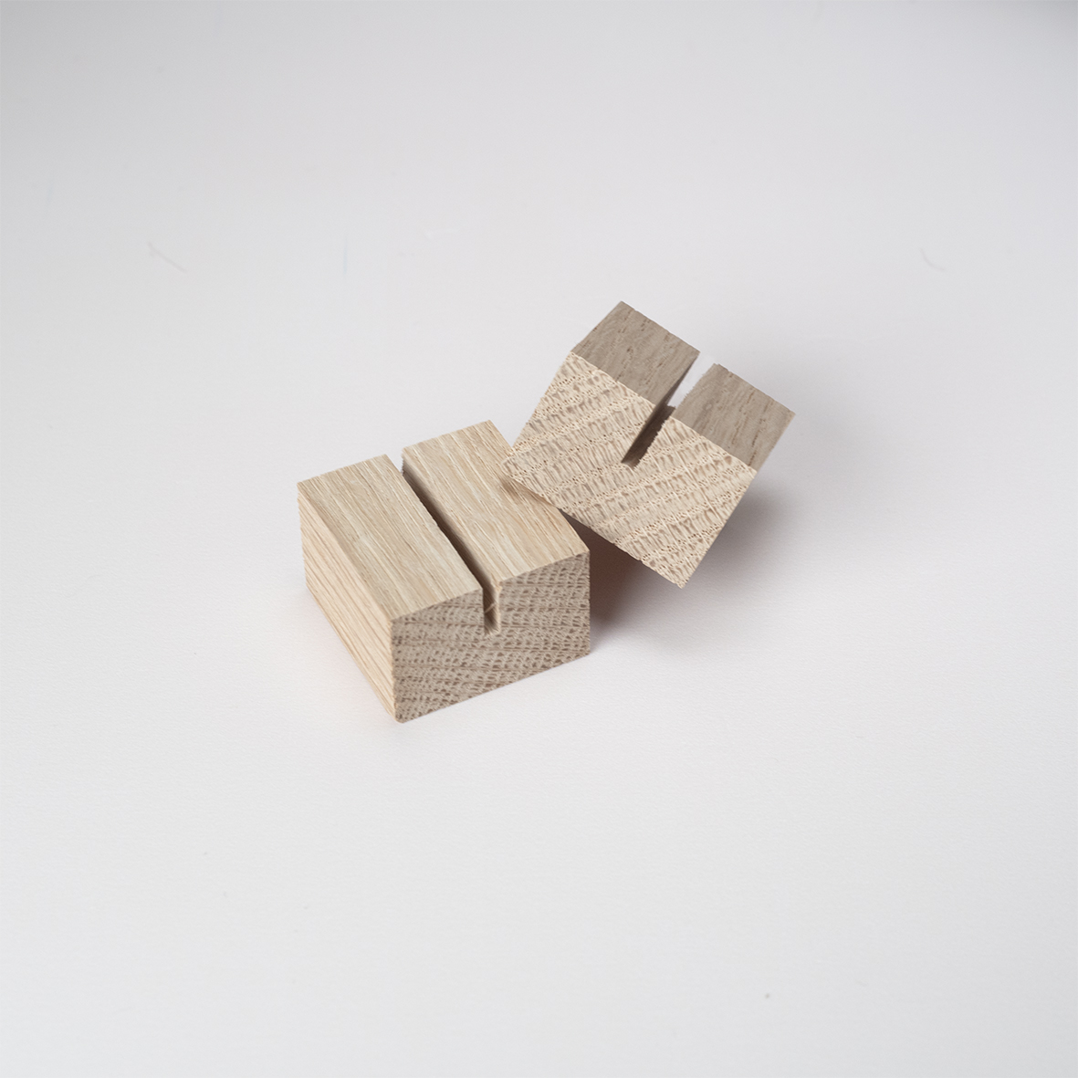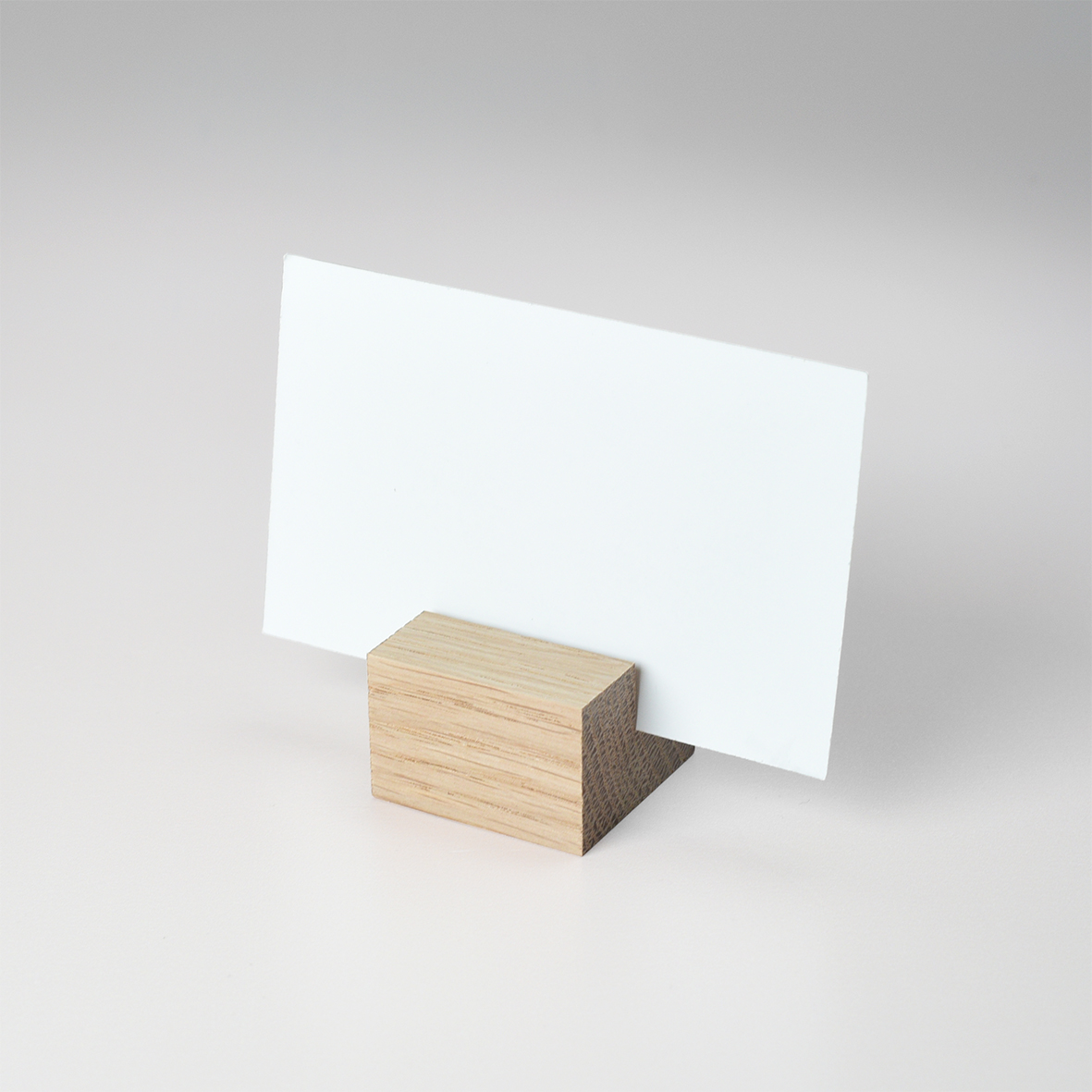 Eikenhouten naamkaarthouders (10 stuks). Formaat: 3 cm (breedte) x 3 cm (diepte) x 2 cm (hoogte).