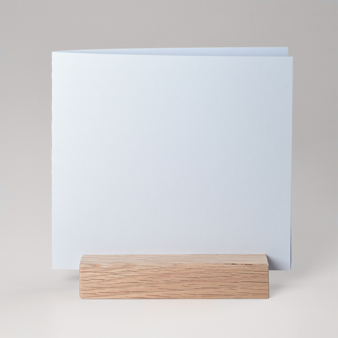 Eikenhouten kaarthouder. Formaat: 10 cm (lengte) x 3 cm (breedte) x 2 cm (hoogte). De gleuf is 2 mm breed.