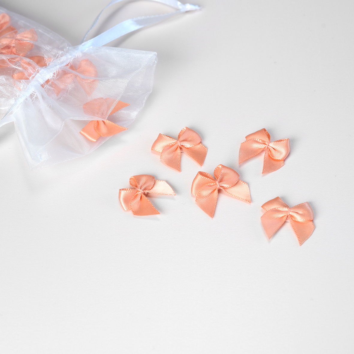 Mooie peach strikjes met gemakkelijk plakstripje voor op een geboortekaart. In elk zakje zitten 25 strikjes. SALE: Van € 6,25 voor € 3,95.